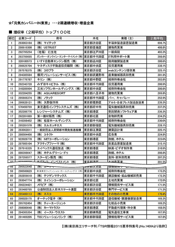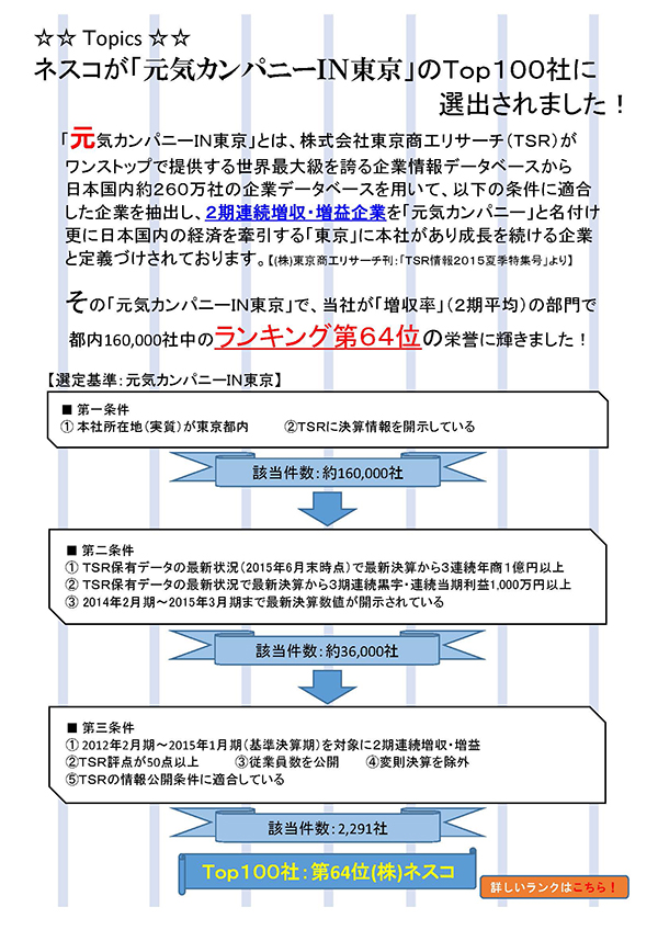 ◆ 元気カンパニーIN東京」Top100に選出されました!
